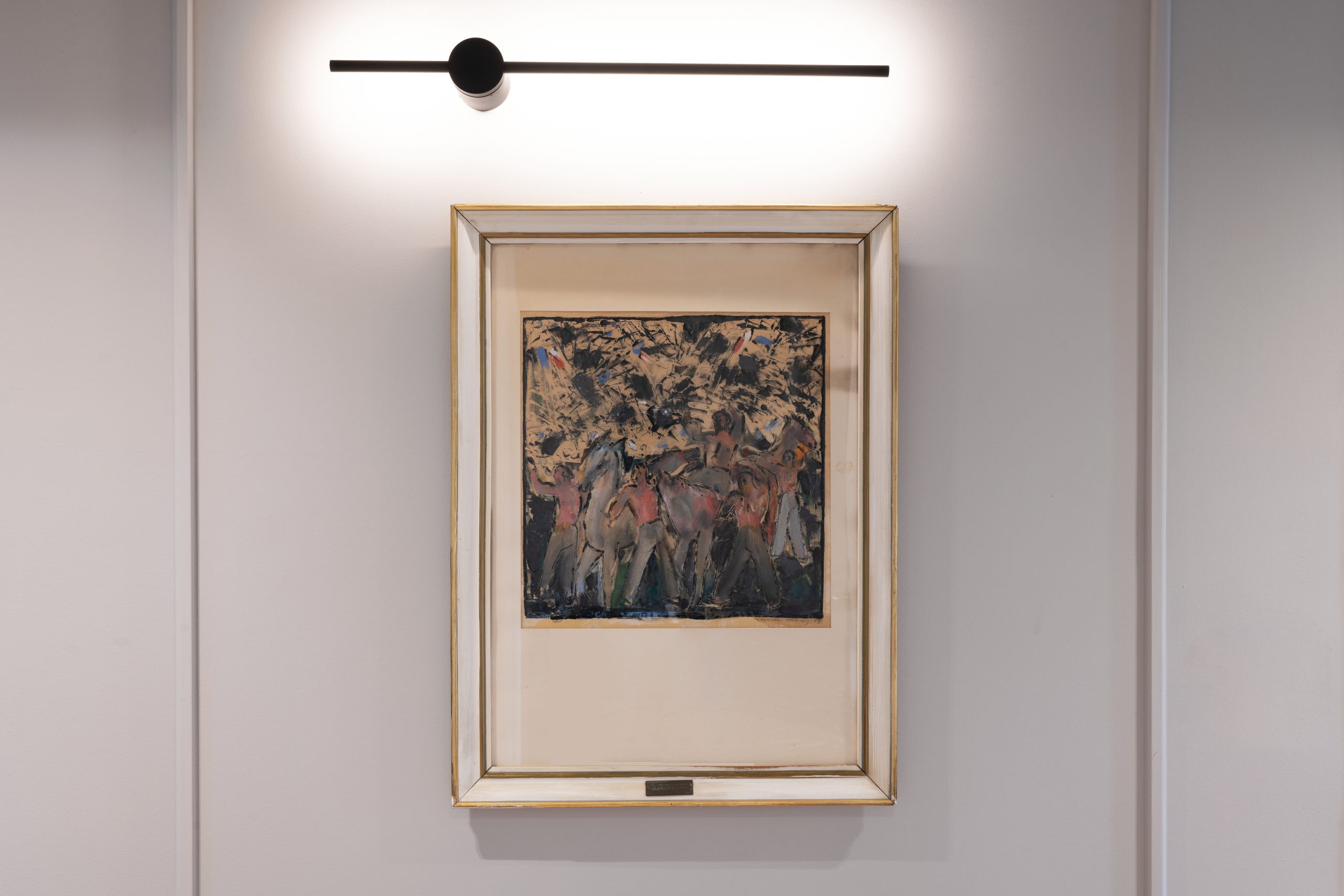 Osrednji del stanovanja predstavlja bivalni prostor, ki združuje dnevno sobo, jedilnico in kuhinjo. Od tu nas hodnik popelje še do kopalnice, spalnice in otroške sobe. Prevladujejo svetli barvni toni, ter brezčasni črni in zlati detajli. Tla so obložena z rahlo beljenim hrastovim parketom, nekatere fronte omaric so porezkane