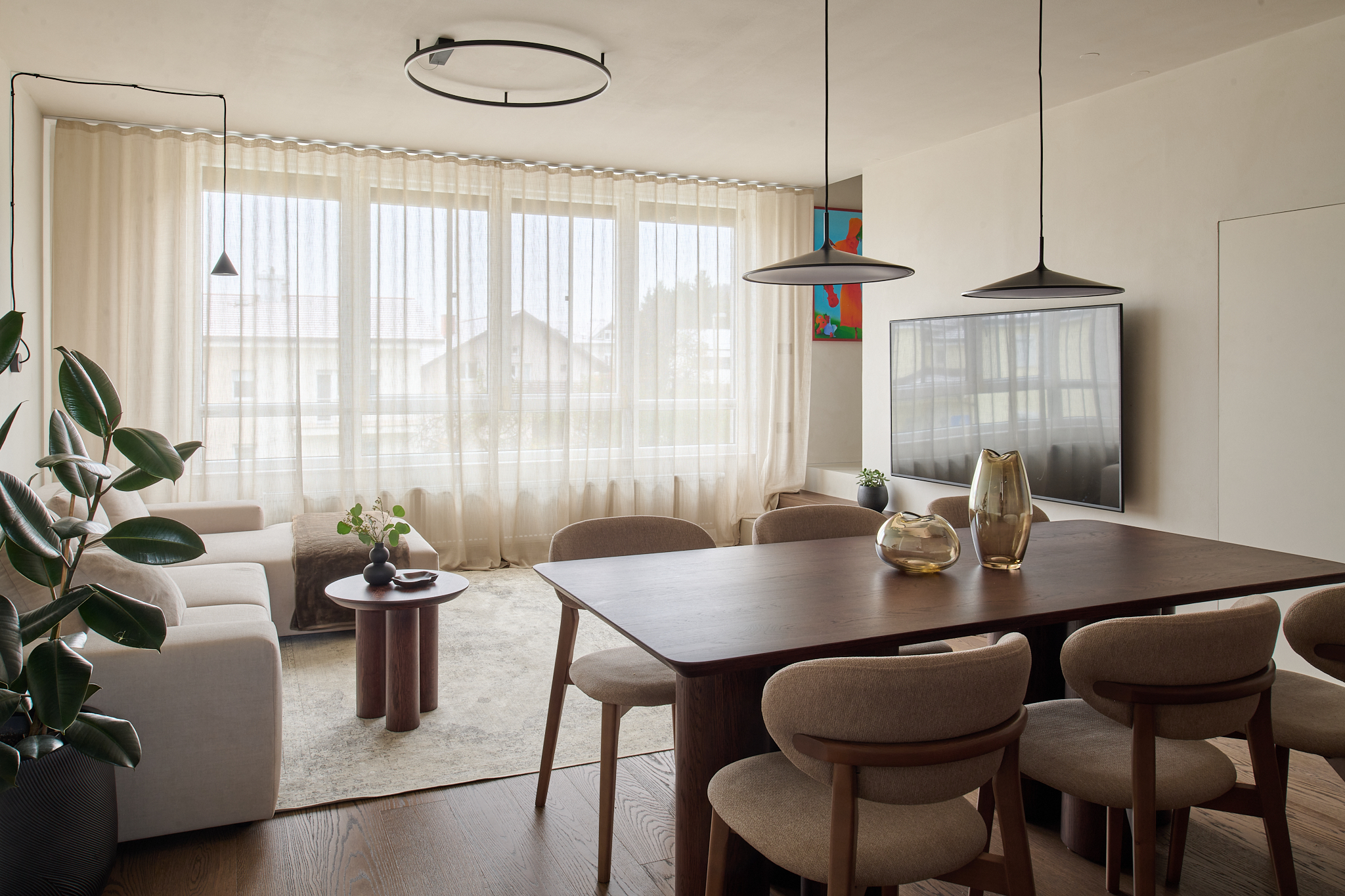 Stanovanje Lastovka je zasnovan za naročnika, ki sta si želela harmoničen in prijeten dom, ki bo ohranil svojo sodobnost in privlačnost skozi leta. Rezultat je eleganten ambient, kjer prevladujejo naravni toni in prefinjeni materiali, ki ustvarjajo občutek topline in udobja.