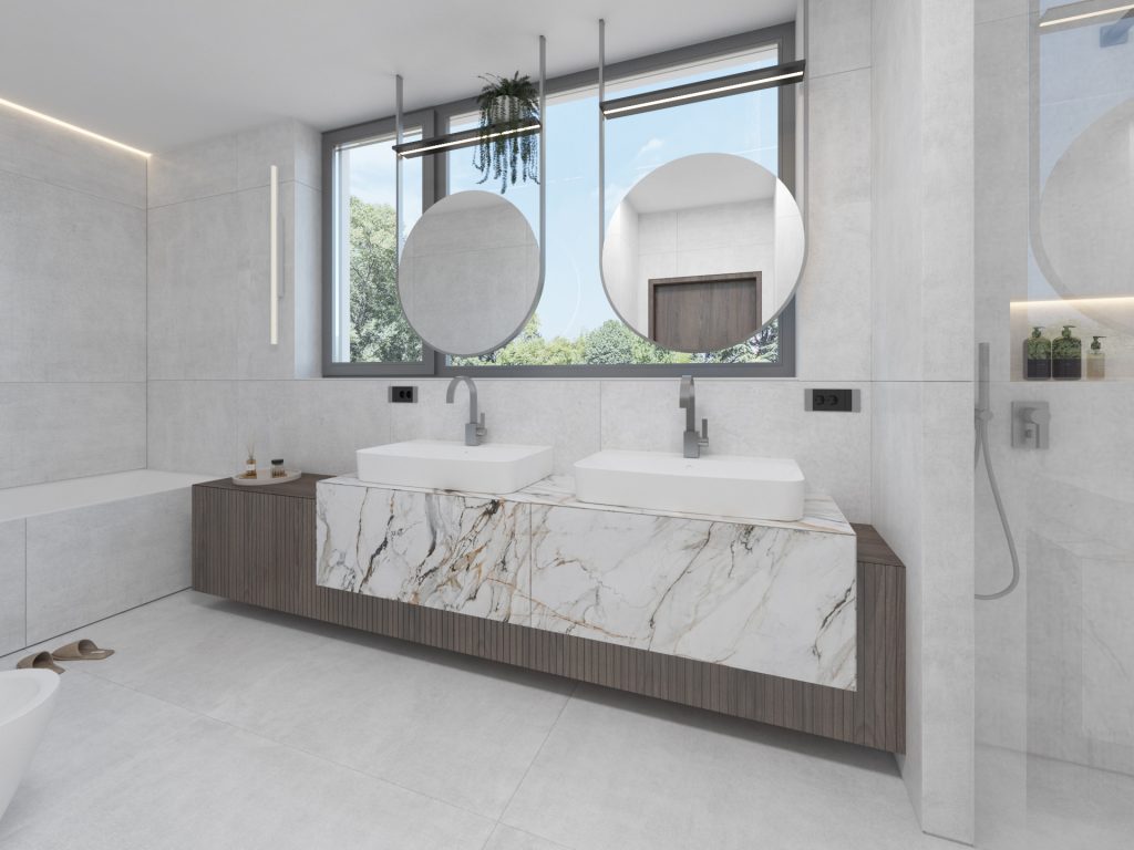 Pri projektu Vila na hribu smo sodelovali s starejšim parom iz Ljubljane, ki si je za svoj novi dom zaželel zrelega in brezčasnega dizajna. Le tega smo prilagodili že začrtanemu tlorisu iz strani arhitektov in izbrani keramični talni oblogi v sivi barvi.