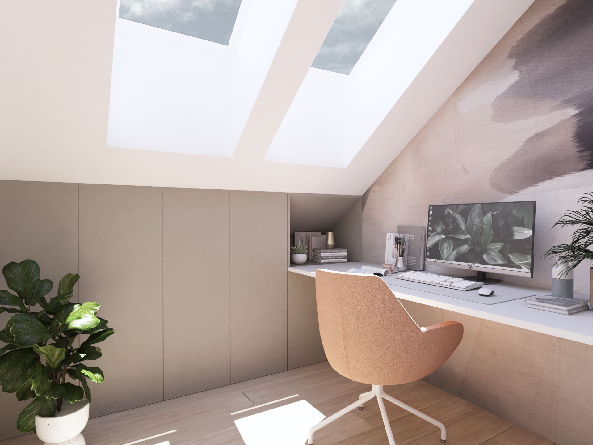 Celoten mansardni prostor je bil v začetnem stanju izjemno nizek, pohodne površine je bilo malo. Za boljši izkoristek smo na vsaki strani predvideli frčado in tako ustvarili dovolj prostora za dve otroški sobi.